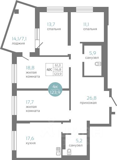 123,9 м²