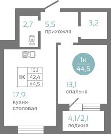 44,5 м²