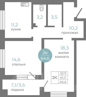 64,6 м²