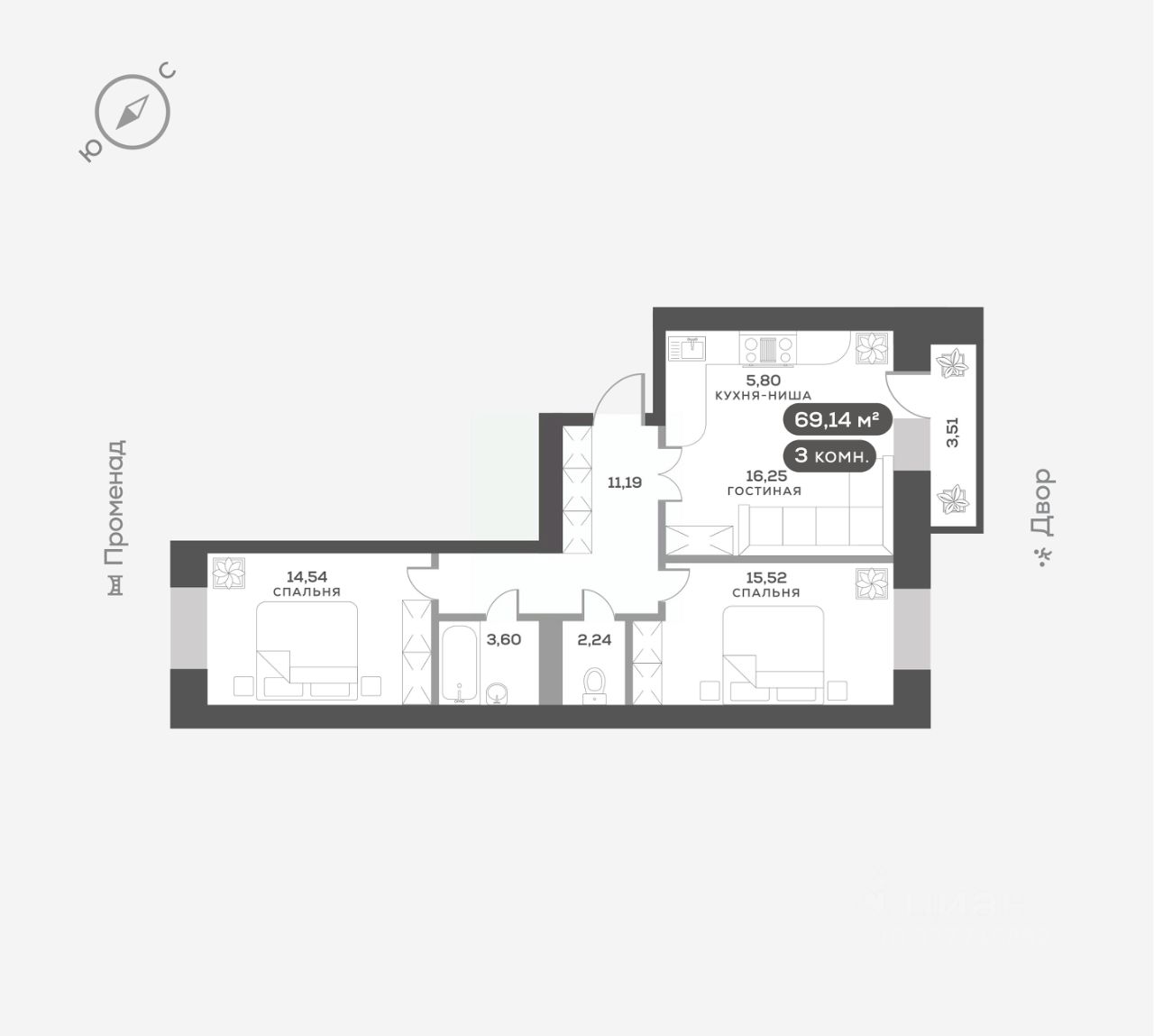 Квартира сдается в отделке "белый куб". Выровнены и оштукатурены стены, бетонная стяжка на полу, натяжной потолок, полная электроподготовка и установлена базовая сантехника. Вы получаете ключи от квартиры, подготовленной к воплощению ваших фантазий.