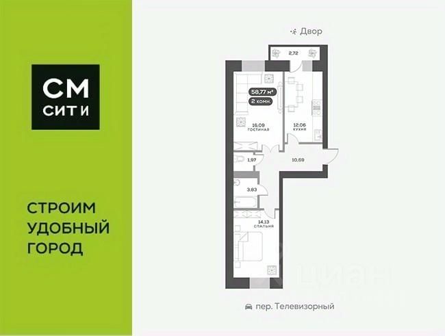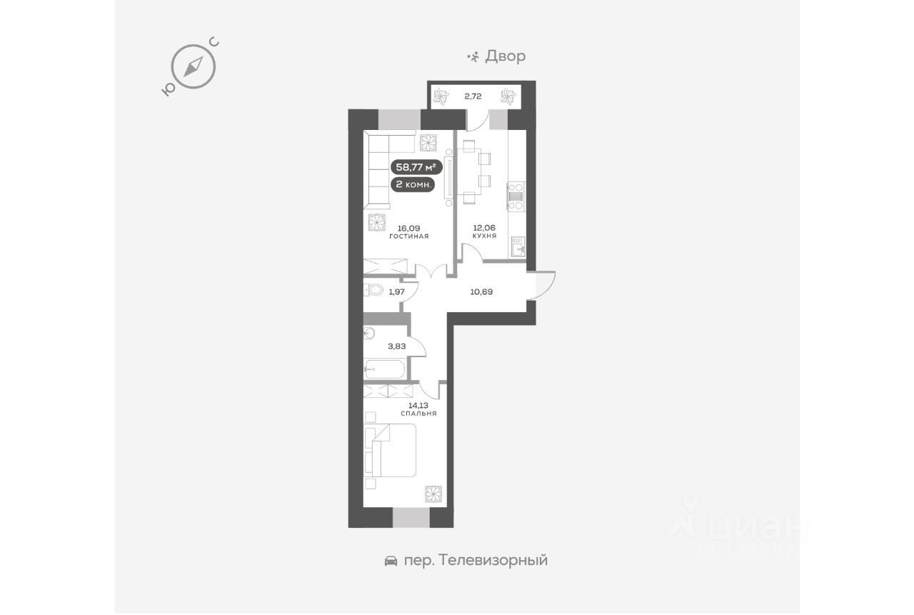 Телевизорный, Дом 1, квартира 221.