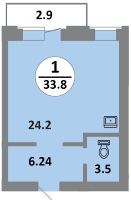 Продаётся 1-комнатная квартира в сданном доме (Соколовская, 52 (Дом 11)), срок сдачи: III-кв. 2024, общей площадью 33.8 кв.м., на 5 этаже.