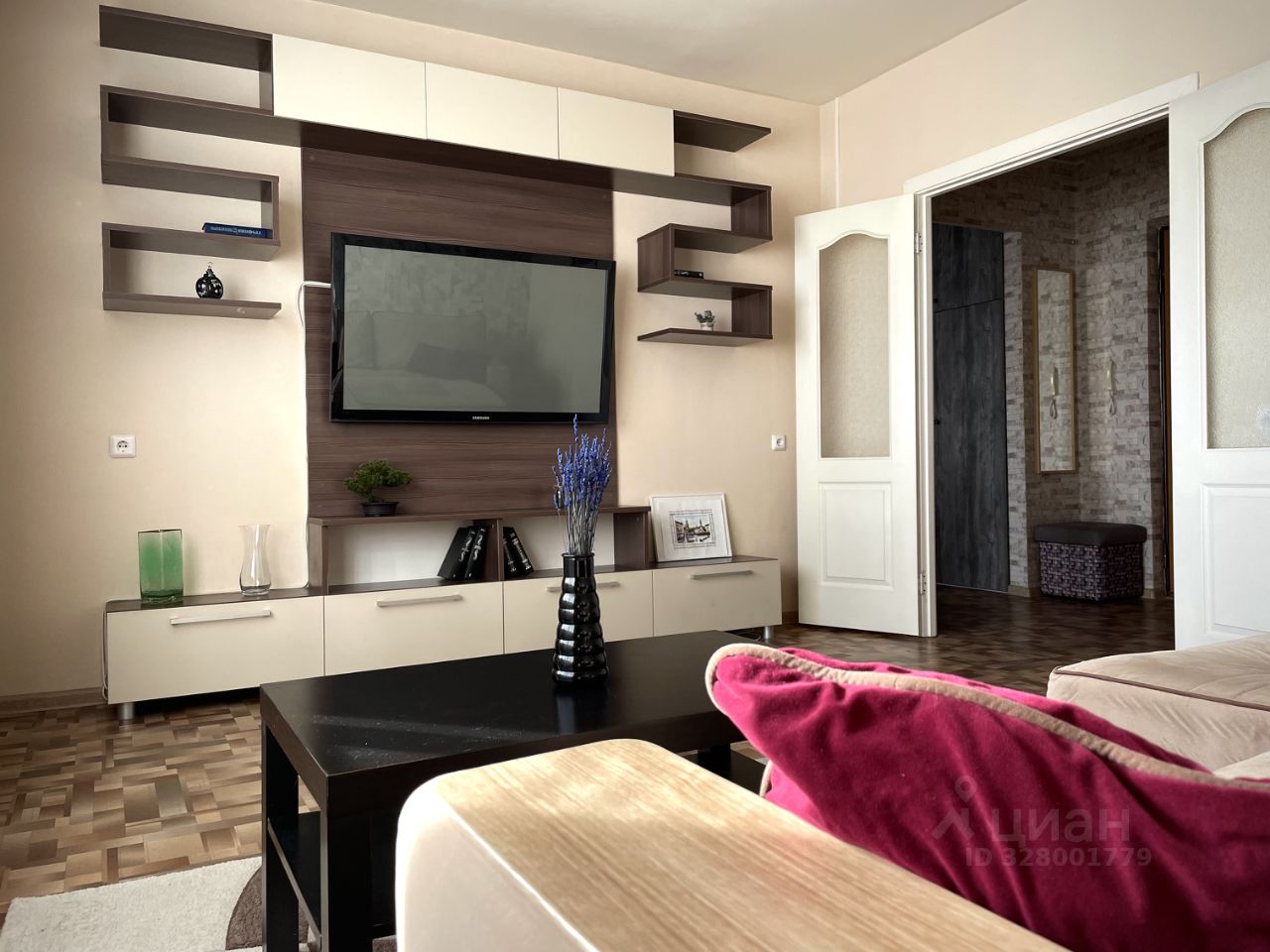 Зал: раскладной диван с пружинным блоком, большой ТВ.