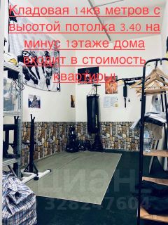 + с квартирой продается кладовая 14 кв. м., с высокими потолками 3.8. Находящаяся на цокольном этаже дома, спуститься можно на лифте. На кладовую имеются отдельные зарегистрированные права собственности. У нас она оборудована под спорт зал.