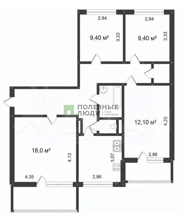 1 лоджия, 1 балкон