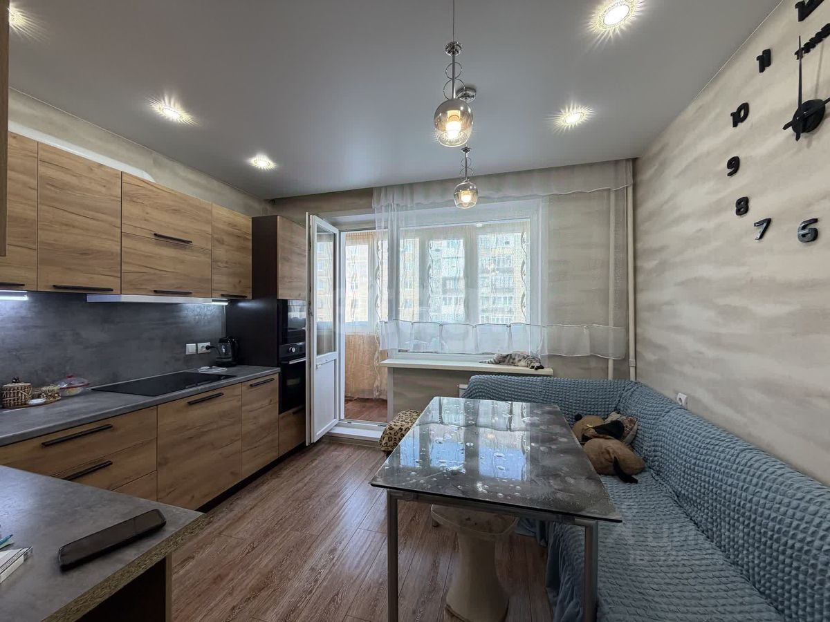 5. На кухне обустроена функциональная кухонная гарнитура и натяжной потолок с точечным освещением.