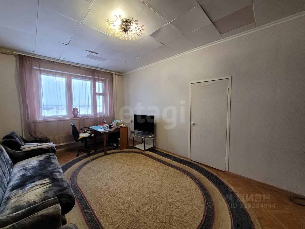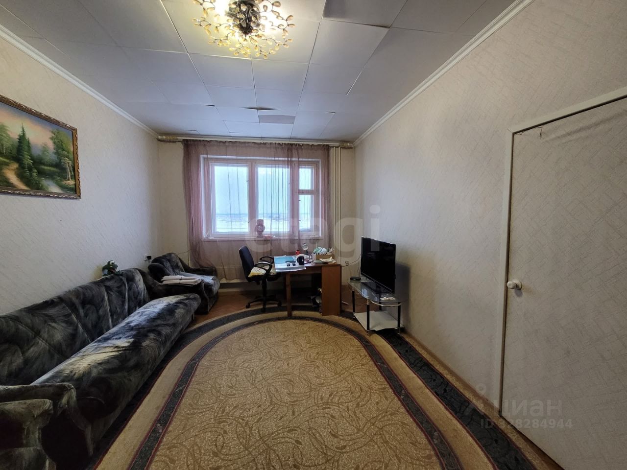 В квартире требуется ремонт: окна деревянные, входная и межкомнатные двери старого образца, потолок оклеен панелями ПВХ, полы деревянные, застелены линолеумом, радиаторы отопления медные.