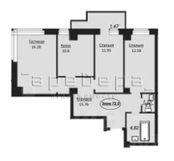 Квартира имеет три полноценных раздельных комнаты, отдельная кухня 10,5м2, два санузла, большая прихожую.