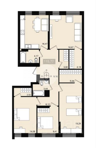 Арт. 132203031 Предлагаем вашему вниманию просторную квартиру в готовом жилом комплексе класса комфорта.