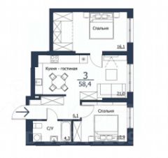 Планировка квартиры идеальна для жизни вашей мечты: просторная кухня-гостиная станет местом семейных вечеров и дружеских встреч, уютные спальни обеспечат полноценный отдых, а современный санузел порадует функциональностью и стилем.