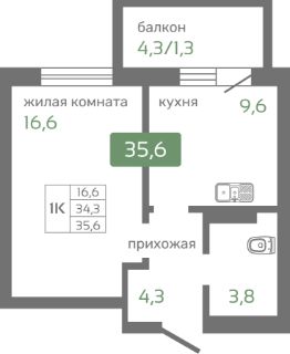 Общая площадь34,3 м²