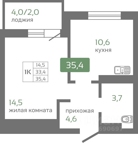 Общая площадь33,3 м²