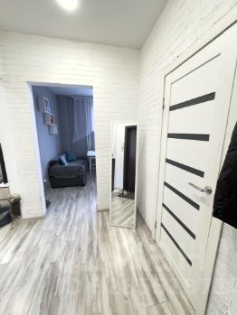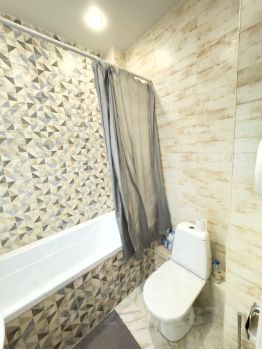 Квартира с современным евроремонтом, тщательно продуманная планировка и качественная отделка. В просторной комнате и на кухне установлена современная мебель, которая может остаться новым владельцам. Санузел совмещенный, оснащен всем необходимым. В комнате установлен встроенный шкаф. В квартире есть балкон, откуда открывается вид на улицу.