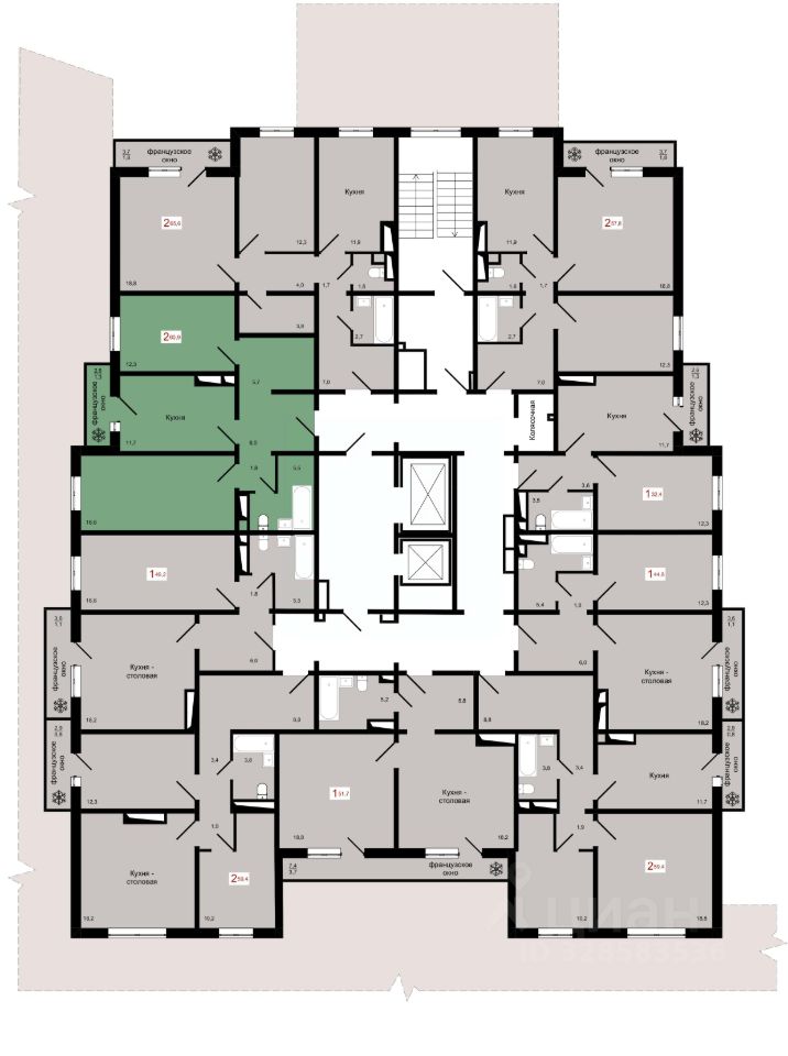 Продаётся 2-комнатная квартира в строящемся доме (Дом 4), срок сдачи: IV-кв. 2027, общей площадью 60.9 кв.м., на 16 этаже.