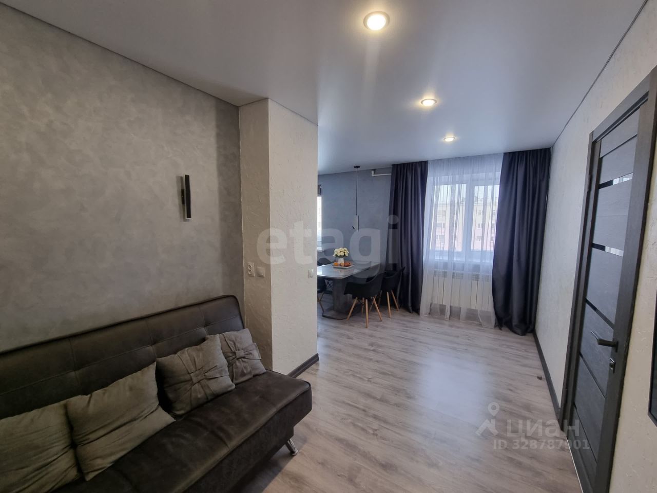 Пятикомнатная квартира в центре города, на среднем этаже пятиэтажного кирпичного дома. Выполнен капитальный ремонт: полностью заменена электропроводка на медь, радиаторы отопления - биметаллические, стены окрашены под штукатурку, по всей квартире натянут потолок, на полу уложен ламинат.