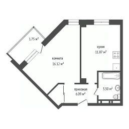 - Просторная однокомнатная квартира общей площадью 38.7 м² с прекрасной чистовой отделкой