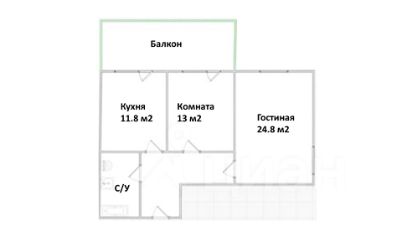 Просторная и Светлая гостиная 24.8 м2 с выходом на застекленный балкон