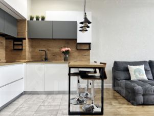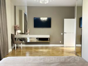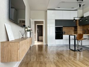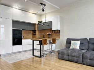 Эта квартира наполнена теплотой и заботой. Мы создавали её для себя, учитывая все требования современной жизни. Большие панорамные окна и 3-х метровые потолки дают ощущение безграничного пространства.