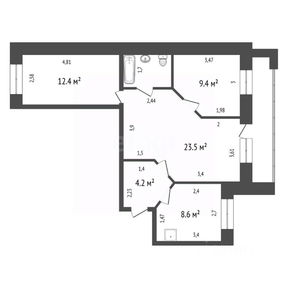 Лоджия и окна выходят на разные стороны дома.