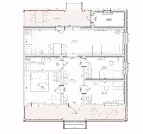 Внутреннее пространство включает 3 комнаты и комфортную кухню - гостиную.