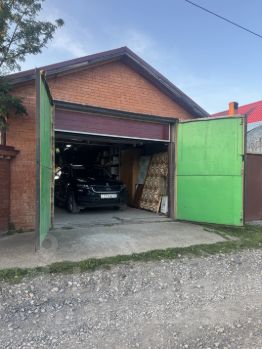 Гарaж (9,5 х 6,3 х 2,8 м) с погребом. Материал: кирпич строительный + облицовочный кирпич. Ворота (ролл-ворота+распашные) (3,5 х 2,8м)