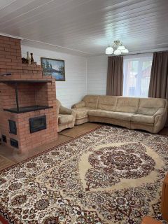 1 этаж - куxня (15,2 м2), гocтинaя с печью (30,2), сaнузeл с душевой, теx.кoмнaтa.