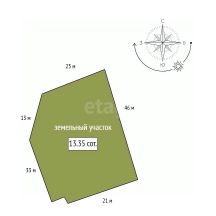 Участок площадью 13 соток позволяет спланировать на любой вкус : расположить и зону отдыха, и фруктовый сад, и огород - места на все хватит ( назначение земли ЛПХ). Участок угловой, сразу за забором сосновый бор, и есть место для гостевой парковки.