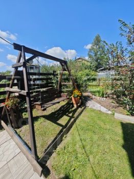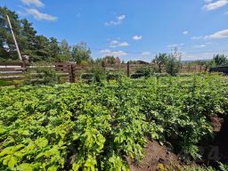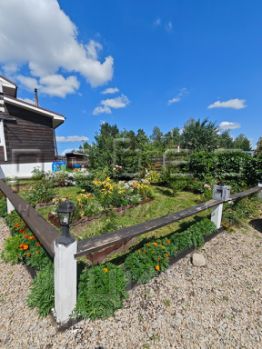 Участок ровный, ухоженный, все растет и благоухает. Растет малина, смородина черная и красная, вишня, крыжовник, жимолость, ранетки. Перед домом ели, сосны, сирени, девичий виноград украшают входную группу. Многолетние цвета, розы, пионы, лилии, ирисы радуют глаз. Клубники посажены три грядки.