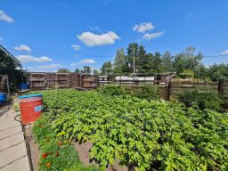 В конце участка расположена хозпостройка, здесь можно держать курочек, и за ним выход к второстепенной дороге внутри общества.