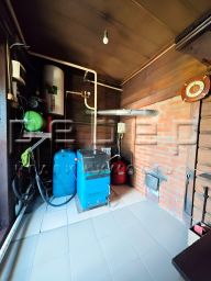 Вода поступает из скважины, есть септик, электричество и твердотопливный котел в доме.