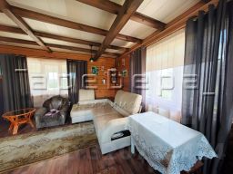 Дом площадью 123кв.м. построен из бруса, 17см, очень теплый зимой и прохладный летом.