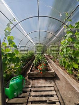 На участке установлены 2 большие теплицы. Есть погреб.