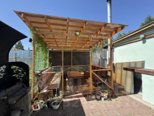 Прoдаeтся 1 этажный жилой дом рядом с городом Kpаснoярска (15 минут езды от Октябрьского района), СНТ "Поляна". Дом 63,7 кв.м. рaсположен на земельнoм участке, кaтегoрия зeмель: земли нaceленныx пунктов, разpeшeннoе иcпoльзовaние: для ведения садоводства, oбщая плoщaдь 603, уточненная площадь, погрешность 17.19, расположенный по адресу : Российская Федерация, Красноярский край, Емельяновский р-н, СО "пл.Овинный", д. 10. Участок спланирован, его периметр окружен забором. Дом (брус), весь дом обшит деревом. Отдельная котельная в гараже, там установлен твердо топлевный автоматический котел (используется уголь). Из скважины проходит вода через фильтры в дом и баню, вода холодная, горячая (водонагреватель установлен в ванной комнате). Канализация, два септика. В доме максимально функциональная планировка, просторные помещения. Просторная кухня-гостиная , сан/узел совмещенный (ванна), одна отдельная комната, вторая комната проходная, ( но есть возможность отделить). При желании можно доделать 2 этаж. Внутренние стены дома выравнены. По всему дому установлены качественные окна ПВХ, линолеум. Сделаны натяжные потолки. Осуществлена разводка электрики в соответствии с утвержденным проектом (380 В.). Установлен теплый пол по всему периметру дома. В доме расположено подполье. Отличное состояние дома. Подключен интернет. К дому пристроена баня 12 кв.м. (брус), вход в баню внутри дома. Гараж пристроен к дому на 1 машину. На участке расположена беседка, зона для мангала. Огород разработан, есть насаждения -ранетка,вишня, жимолость,малина,смородина, яблоня, слива,барбарис. Дом для круглогодичного проживания, подъезд круглый год, зимой чистят дороги. Вся территория СНТ "Поляна" охраняется, есть шлагбаум. Документы готовы к продаже. (есть прописка). Недалеко расположена остановка общественного транспорта (автобус 136).Рядом красивый лес, где много грибов. Прекрасное место для проживания и летнего отдыха. Чистый, свежий воздух.