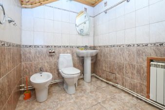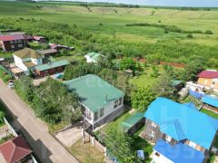 Продается просторный дом с участком 30 соток на берегу реки, состоящий из двух объединенных земельных наделов. Основное здание площадью 400 м² представляет собой трехэтажное строение из бруса с отделкой сайдингом, возведенное на надежном ленточном фундаменте с качественной гидроизоляцией. На территории расположены дополнительные постройки: гараж на два автомобиля, гостевой дом с баней (60 м²), летняя баня с беседкой, зона барбекю, хозяйственный домик с русской печью, водоснабжением и санузлом (30 м²). Инженерные системы включают две скважины, три независимых септика, отопление через электрокотел (24 кВт) с дублирующим твердотопливным котлом, в гостевом доме установлен отдельный электрокотел (12 кВт).