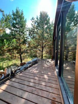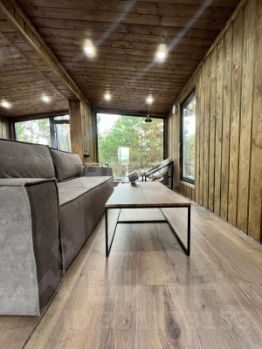 Продам новый готовый дом с панорамными окнами и баней на участке 10 соток! Дом подойдет для круглогодичного проживания, а так же для сдачи в аренду, вариант готового бизнеса! В доме остается вся мебель, кресла, диван, кровать с матрасом, сантехника куплена, но не установлена! Баня площадью 15,6 квадратов с гостевой комнатой, где можно проводить теплые встречи с семьей и друзьями! У дома и бани есть террасы, где можно наслаждаться согревающими напитками, наблюдаю за красотой природы, расположенной прямо на участке, на котором растут молодые сосны и другие деревья! Звоните, этот дом может стать именно Вашим!