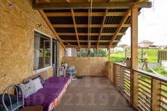 Планировка включает закрытую веранду с теплым полом и открытую террасу под крышей — удобное место для отдыха в любую погоду. Участок благоустроен: высажены яблони, вишня и клубника, разбиты грядки, установлены качели на четырех человек. Въезд на территорию оборудован откатными воротами, есть парковочная площадка на два автомобиля и место под гараж.