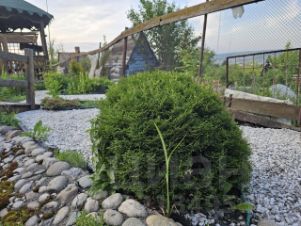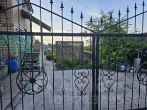 Весь участок ухожен, дорожки выложены брусчаткой, забор с коваными элементами и бетонная площадка на два автомобиля.