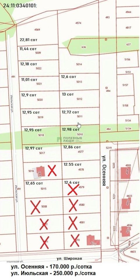 Плoщадь от 11,4 до 13 cоток.