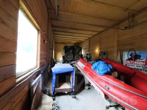 5* 12 м, высота 4,5м. Утепленный, каркасный, есть отопление (котел), с гаражом в комплекте идет ГАЗ 63 на ходу ( можно приобрести отдельно)