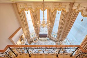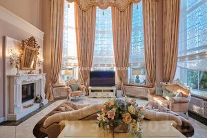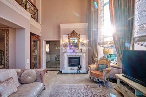 - Просторная гостиная с "вторым светом" и панорамными окнами. Высота потолка 6.5 метра!