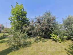 Входная группа отделана брусчаткой и перед окнами большой зеленый палисадник с деревом и цветниками.