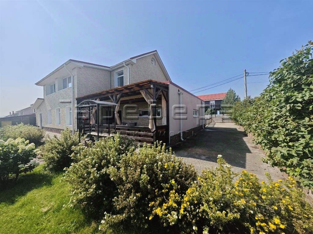 Дом 250 кв.м. из кирпича обшит германским сайдингом, стоит на ровном благоустроенном участке 10 соток. Гараж находится с левой части дома площадью 23 кв.м.