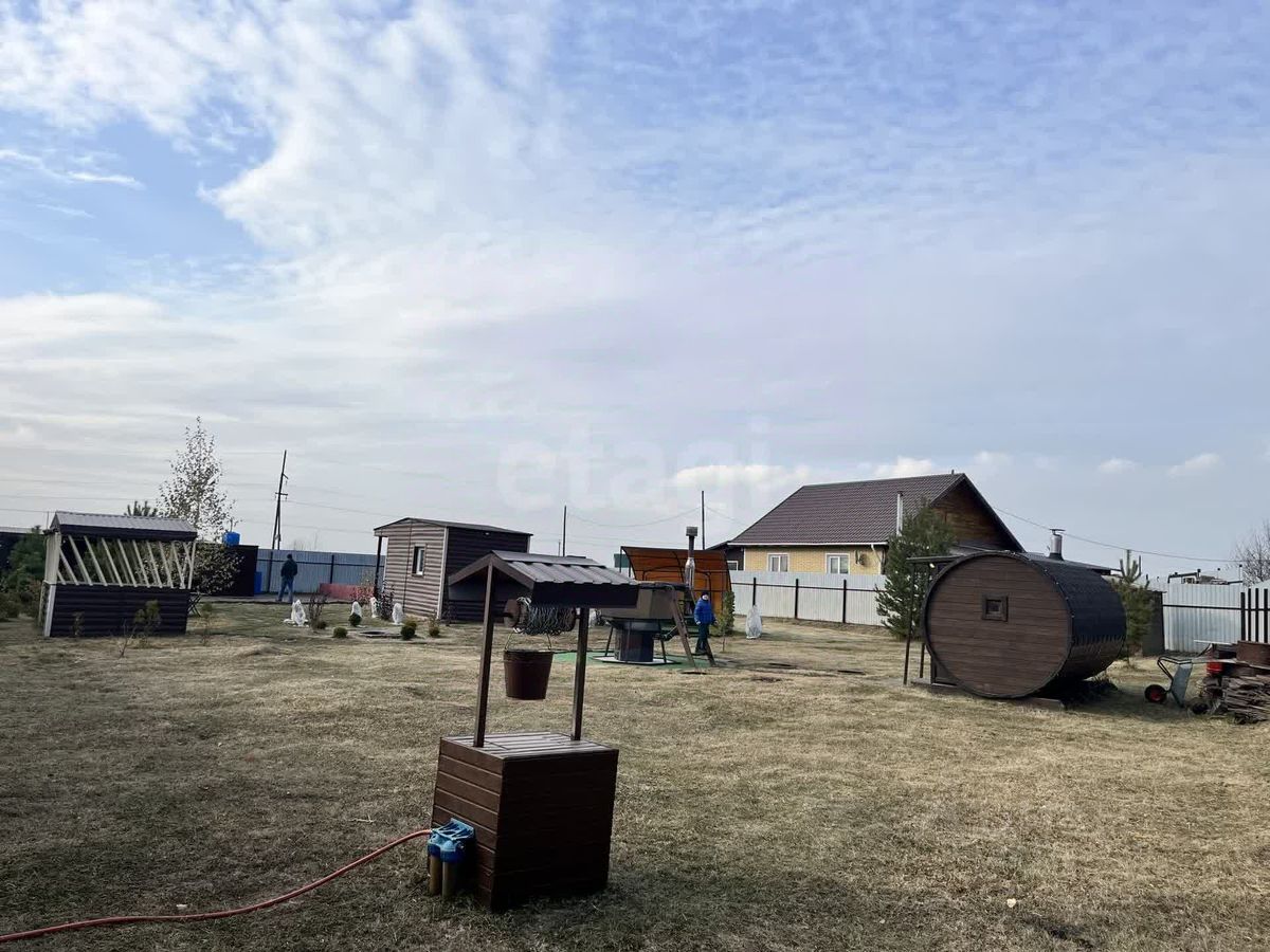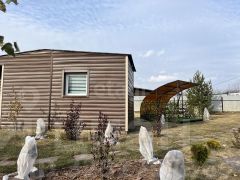 1) Деревянный домик с отделкой под брус, который отлично подойдет для проживания.