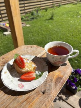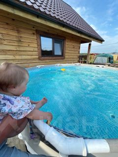 На участке ничего лишнего, всё аккуратно оформлено, посажены: клубника, яблони, вишни, крыжовник, сосны, ели, кедры, дубки (совсем ещё юнцы). Есть площадка для бассейна и каркасный бассейн, хоз блок.
