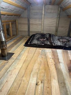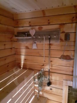 Дом из 150 бруса 60м2 на ленточном фундаменте. 1 этаж с мансардой, 2 этаж спальная комната. Сауна с каминной печью из чугуна (камень: дунит и жадеит), вставлены качественные пластиковые окна и входная деревянная дверь, стены добротно законопачены.