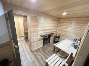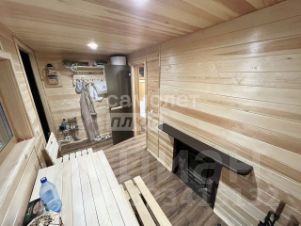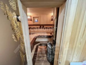 Баня с открытой верандой под крышей, сделана из бруса 10х10, на ленточном фундаменте, утеплена минеральной ватой 10 см., обшита металлическим сайдингом как и дом, на крыше металлочерепица. Внутри обшита деревом элитных пород, на полу плитка.