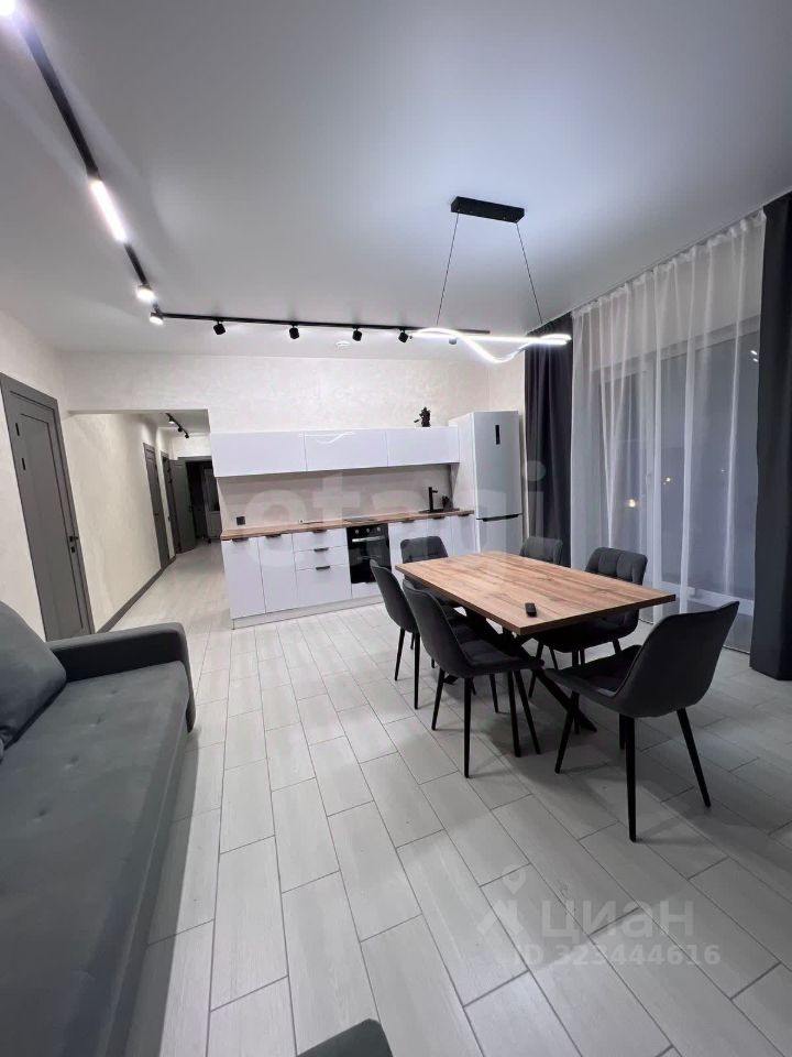 Вся мебель и техника новая, остается покупателю: кухонный гарнитур со встроенной техникой и обеденной группой, диван, кровати в спальнях, телевизоры и т.д.