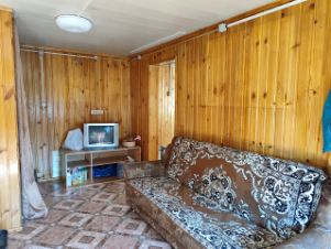 Площадь дома 93,1 кв. м., внутри отделан евровагонкой, полы деревянные - покрыты линолеумом, отопление печь-камин. Окна ПВХ и рольставни.