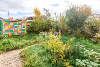 Земельный участок 4,6 сотки. Выровнен, находится на возвышении. Многолетние насаждения, декоративные и плодовые деревья и кустарники, площадка для барбекю. Есть парковочные места во дворе и со стороны улицы.