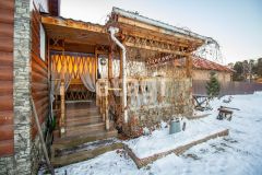 На территории участка имеются следующие постройки: баня из бруса 48 м с выходом на беседку, хозяйственное строение и две металлические теплицы, детская горка с домиком.